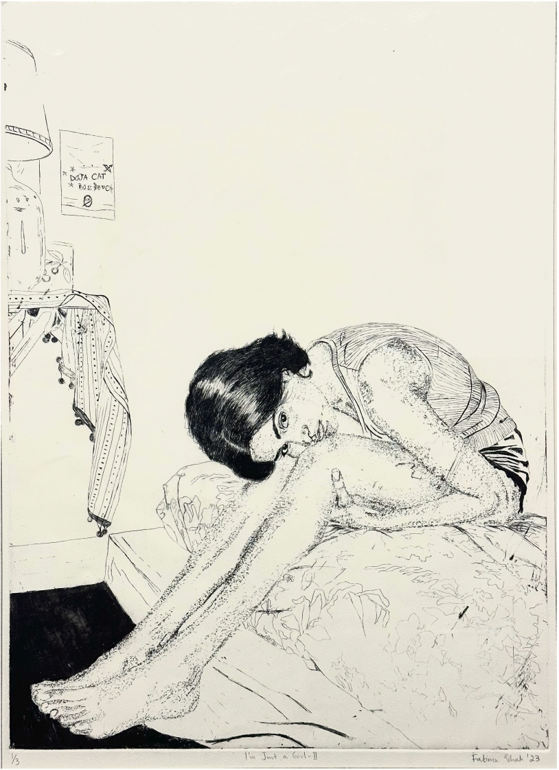 Fatima Shah (born 2000) is a visual artist and printmaker currently based in Karachi, Pakistan. She completed her BFA from the National College of Arts, Lahore in 2024.